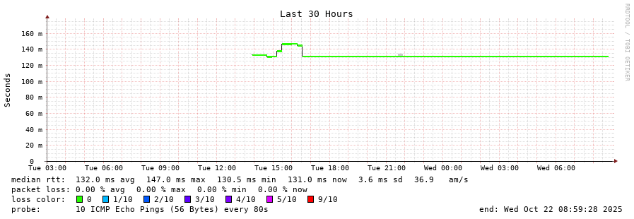 14 > buc-vox-pr1.zet.net (103.246.249.6) [AS6204] 131.343ms 128.391ms 128.409ms